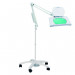 Lampe loupe professionnelle sur pied à roulettes. Lentille 3D extra large 180 mm. Eclairage puissant assuré par deux tubes basse consommation 2x9W situés de part et d'autre de la lentille, ce qui élimine les ombres. La durée de vie des tubes est de 8000h environ. La température de couleur est de 6400K. La tête de cette lampe loupe est orientable et possède un couvercle rabattant pour protéger la lentille.